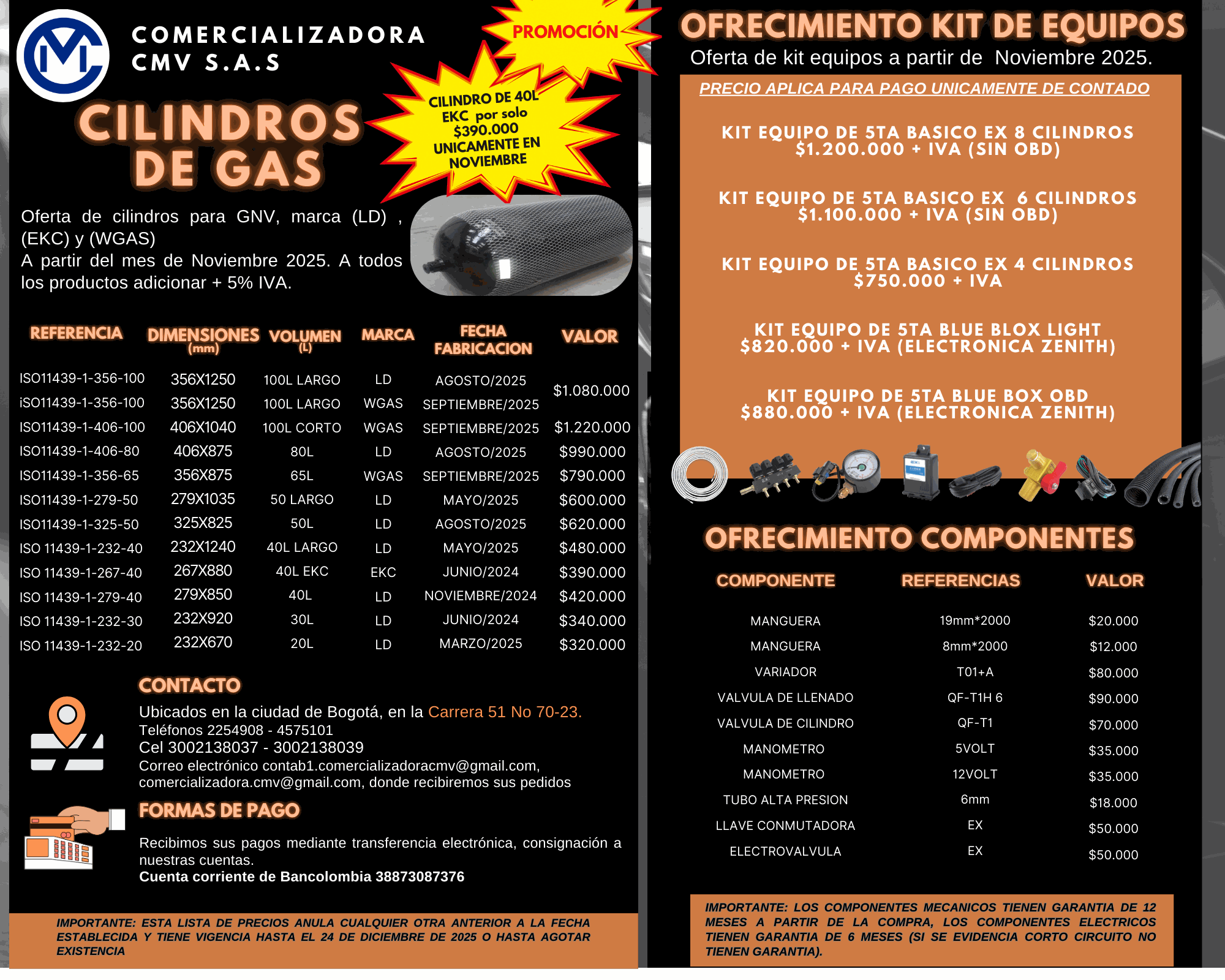 OFRECIMIENTO CILINDROS CMV SAS MARCA LD.